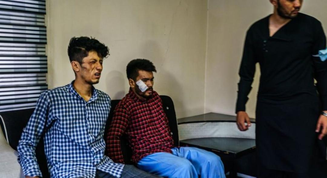 Foto yang beredar online menunjukkan dua wartawan dari surat kabar Etilaatroz dengan bekas luka dan memar setelah penangkapan mereka di ibukota Kabul.