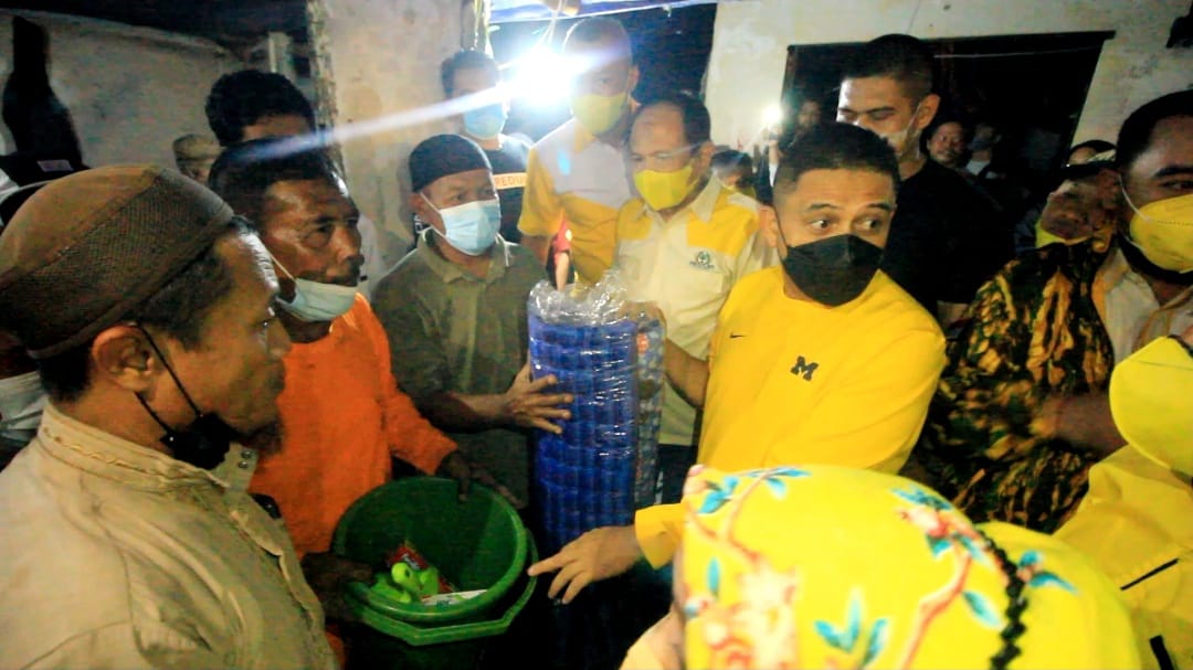 Didampingi Pengurus dan Seluruh Fraksi Partai Golkar DPRD kota Makassar, Munafri Arifuddin, yang juga Ketua Golkar kota Makassar kembali berkunjung ke lokasi korban kebakaran di malam hari ditengah padatnya kegiatanya dan kembali membawah kebutuhan sandang warga di kompleks Lepping diantaranya ratusan sak semen dan seratus matras sebagai alas tidur sementara untuk warga, Ahad,(15/08/2021).