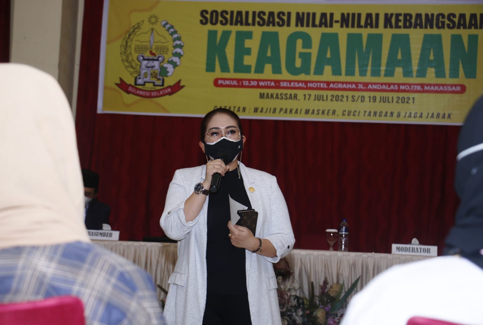 MAKASSAR||Legion-news.com Masih disuasana pandemi COVID-19. Anggota DPRD Sulawesi Selatan dari fraksi Golkar, Debbie Purnama Rusdin melakukan Sosoalisasi Kebangsaan tentang “Keagamaan” di Hotel Graha di Jalan Andalas Makassar. Ahad, (18/07/2021).