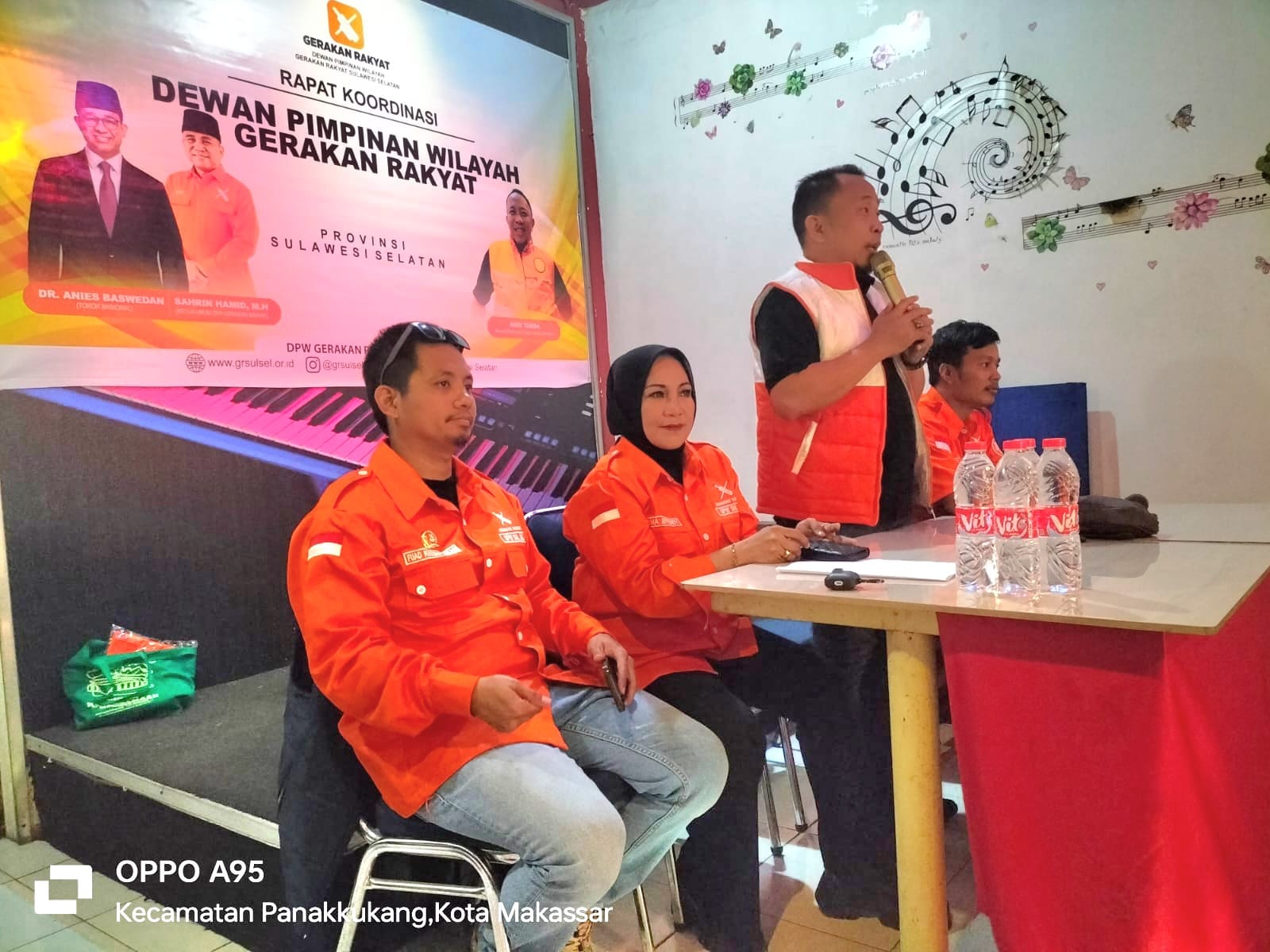 Rakor diawali dengan menyanyikan lagu kebangsaan Indonesia Raya dan Mars Gerakan Rakyat. Suasana kebersamaan tampak kental dengan kehadiran puluhan pengurus, Dewan Pakar, dan Dewan Penasehat DPW GR Sulsel. Rapat berlangsung hingga menjelang Magrib.