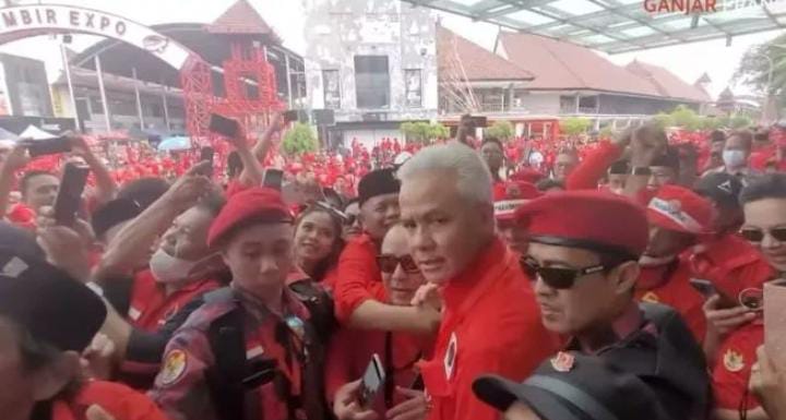 Ganjar bahkan terlihat kesulitan untuk masuk ke lokasi perayaan HUT PDIP sehingga harus dikawal. Tak hanya itu, Ganjar beberapa kali diteriaki ‘presiden’ saat ia tengah membelah kerumunan menuju JIExpo Kemayoran.