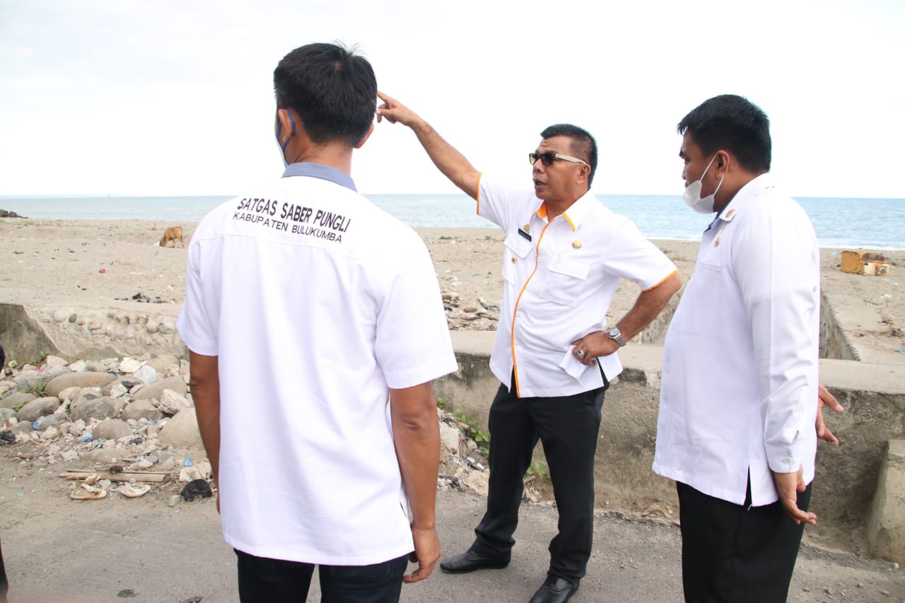 Bupati Bulukumba Andi Muchtar Ali Yusuf saat saat mengarahkan Tim Satgas penanggulangan banjir untuk mengangkut sedimen yang berada di kanal yang menuju kawasan pantai Cekkeng.