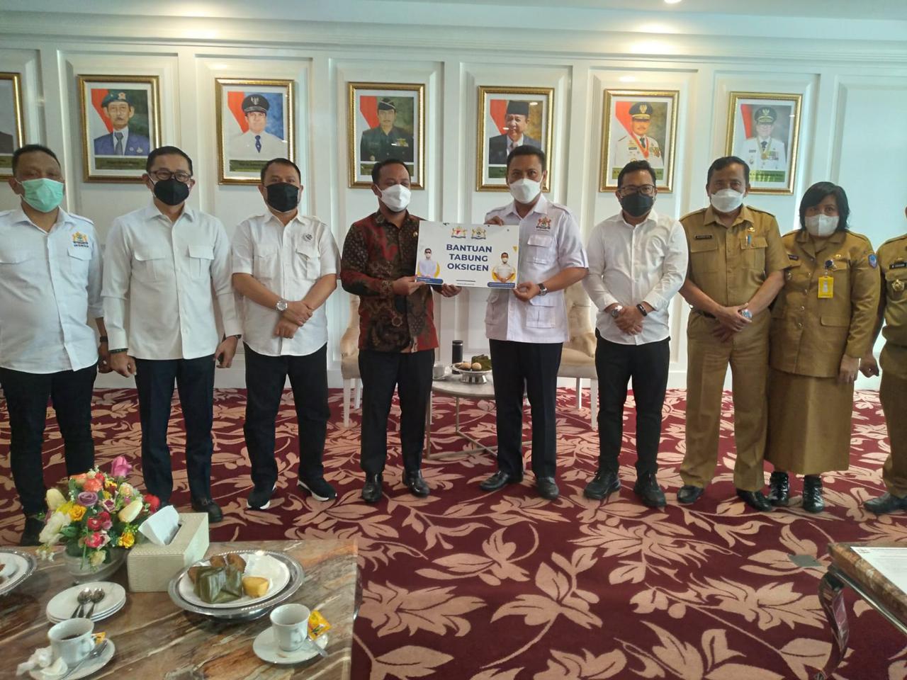 MAKASSAR, Legion-news Kamar Dagang dan Industri Indonesia (Kadin) Provinsi Sulawesi Selatan menyerahkan bantuan 250 oksigen kepada Pemprov Sulsel, di Baruga Lounge Kantor Gubernur Sulsel, Senin (30/8/2021).