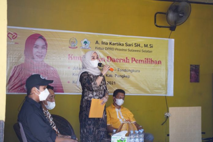 LEGION NEWS.COM, MAKASSAR — Ketua Dewan Perwakilan Rakyat Daerah (DPRD) Provinsi Sulawesi Selatan A. Ina Kartika Sari melangsungkan kegiatan kunjungan Daerah Pemilihan (Kundapil) yang di pusatkan di kecamatan Minasatene dan Kecamatan Bungoro, Kabupaten Pangkep.