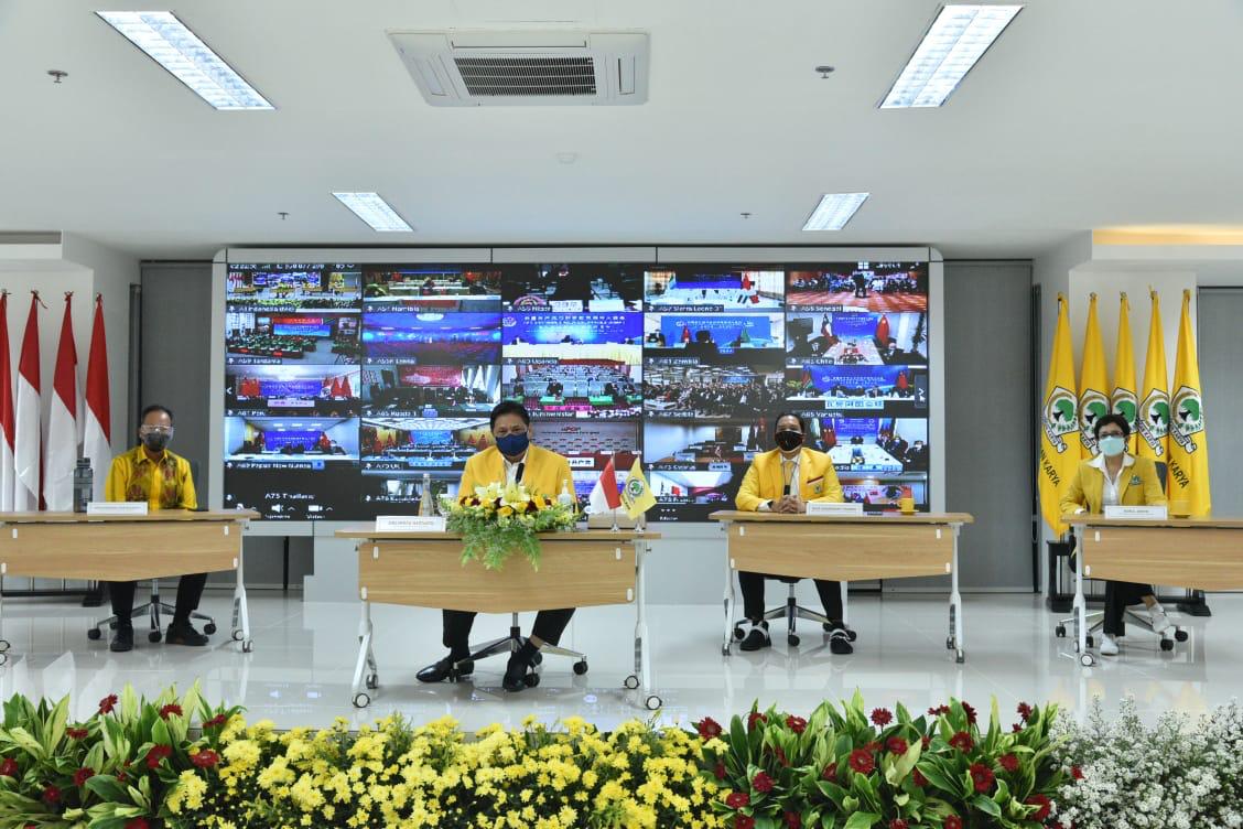Bersama pengurus DPP Partai Golkar saya menghadiri Peringatan 100 Tahun PKC secara virtual di Kantor DPP Partai Golkar, Selasa (6/7). Tulis akun twitter ketua umum partai Golkar @airlangga_hrt