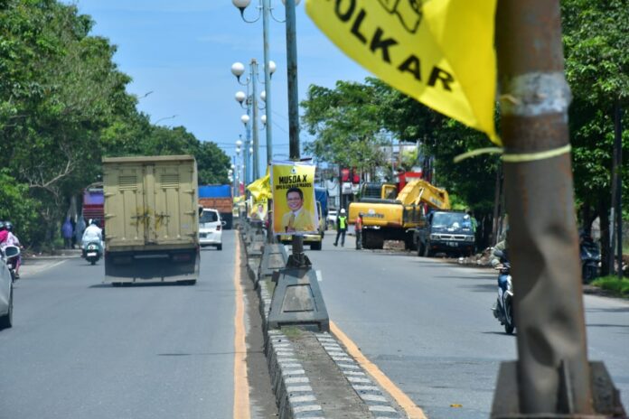 Pemandangan warna kuning di sepanjang jalan semakin menegaskan Partai Golkar sebagai partai pemenang di Maros.