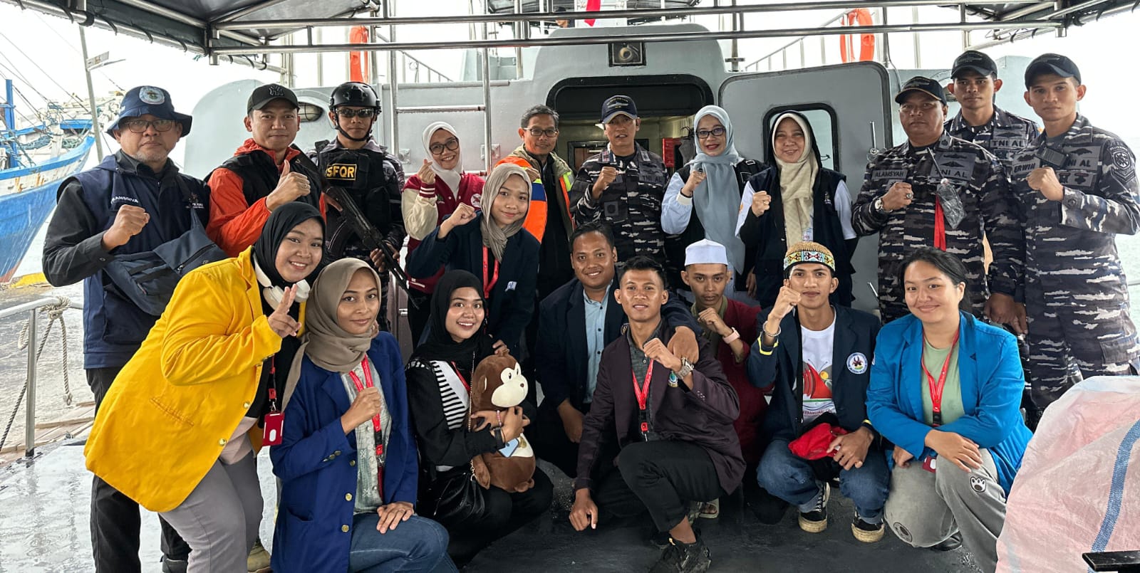 Dan juga jajaran pimpinan dan pendamping KKN Kebangsaan, diantaranya Direktur Transformasi Pendidikan dan Inovasi Pembelajaran Unhas Ir. Sahriyanti Saad, S.Hut., M.Si., Ph.D., Kasubdit Pendidikan Berbasis Pengabdian Masyarakat dan Ketua Panitia KKN Kebangsaan Dr. Ir. Syarifuddin Mabe Parenreng, ST., MT., IPU., CSRS., CRMP., serta Dosen Pengampu Lapangan (DPK) KKN Kebangsaan. Adapun komando pelayaran dipercayakan kepada Kapten Kapal, Lettu Laut (P) Heri Widakdo.