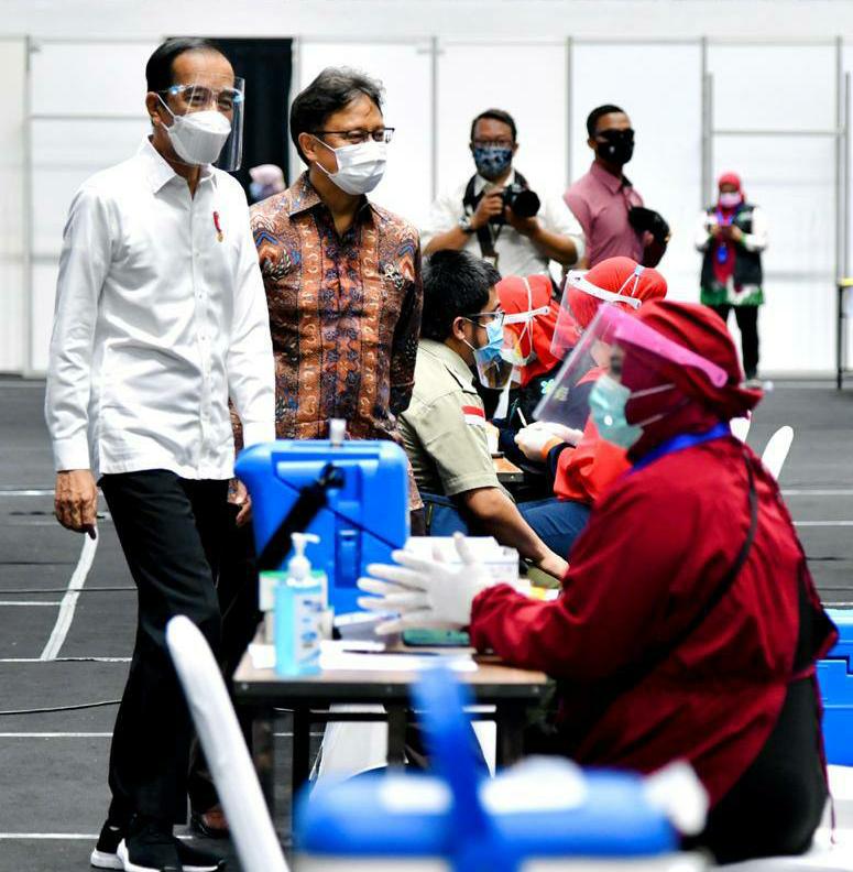 JAKARTA||Legion-news.com Presiden RI Joko Widodo (Jokowi) didampingi Menteri Kesehatan (Menkes) Budi G. Sadikin meninjau program vaksinasi COVID-19 massal kepada Sumber Daya Manusia (SDM) Kesehatan, Kamis (04/02/2021), di Istora Senayan, Jakarta. Kegiatan ini digelar oleh Kementerian Kesehatan (Kemenkes) bersama dengan Dinas Kesehatan (Dinkes) DKI Jakarta serta BUMN Bio Farma.