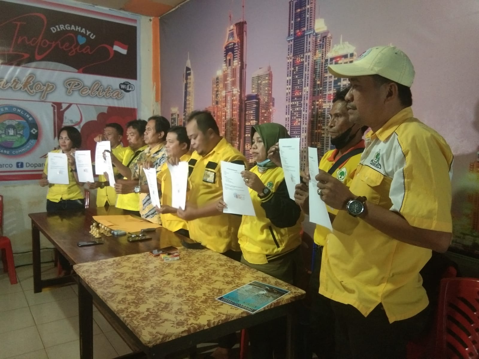 LEGION NEWS.COM – Diduga Sejumlah Pimpian Kecamatan (Pincam) dan Pimpinan Kelurahan (Pimlur) DPD II partai Golkar kota Parapare menggelar konfrensi pers atas penolakan pencalonan istri Taufan Pawe (TP) maju sebagai ketua Golkar Parepare selain itu dilakukan aksi pengunduran diri pengurus PAC.