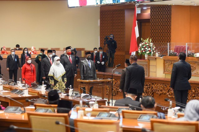 “Tanggung jawab menjaga dan memelihara Pancasila dan UUD 1945. Sumpah, janji kepada Tuhan YME dan manusia yang harus ditepati dengan segala keikhlasan dan kejujuran. Saya harap saudara- saudara mengikuti lafal sumpah janji yang akan saya pandu,” kata Gus Muhaimin sesaat sebelum memandu pengucapan sumpah dan janji Anggota PAW DPR RI, di Gedung Nusantara II, Senayan, Jakarta, Senin (1/11/2021).