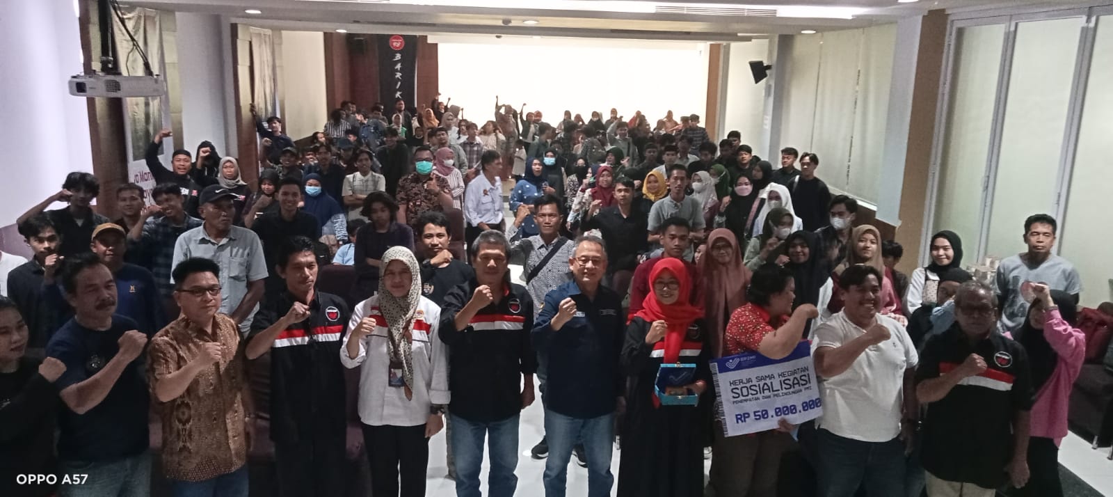 Peserta sosialisasi penempatan dan perlindungan pekerja migran Indonesia dihadiri mahasiswa tingkat akhir dari berbagai kampus besar di Makassar. Selain itu hadir juga para calon pekerja migran indonesia.