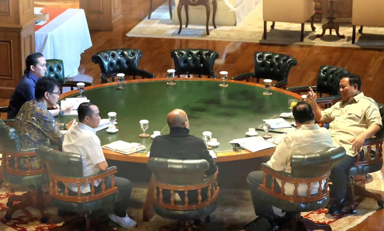 FOTO: Presiden Prabowo Subianto menggelar rapat terbatas (Ratas) dengan sejumlah menteri dibidang ekonomi. Ratas itu digelar di kediaman pribadi Presiden di Hambalang, Bogor pada Minggu (15/2) sore. (Dok. Seskab)