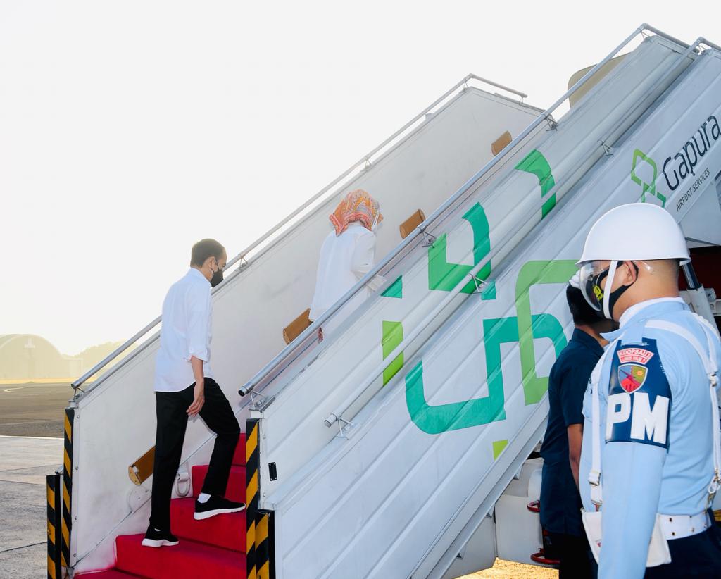 Kepala Negara bersama rombongan lepas landas dengan dengan menggunakan Pesawat Kepresidenan Indonesia-1 sekitar pukul 06.30 WIB, melalui Pangkalan TNI AU Halim Perdanakusuma Jakarta.