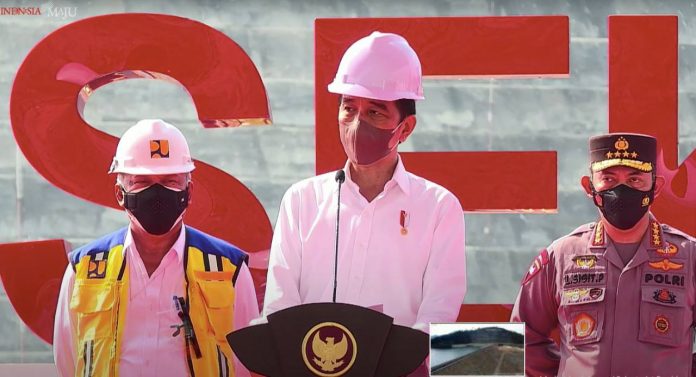 PEMERINTAH, Legion-news Presiden Joko Widodo atau Jokowi resmikan Bendungan Way Sekampung di Kabupaten Pringsewu, Provinsi Lampung Kamis sore, (2/9/2021).