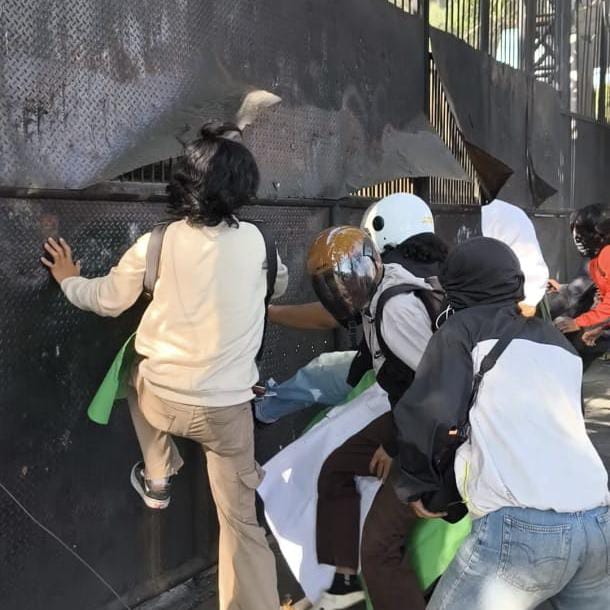 Aksi sempat memanas saat pengunjuk rasa mencoba menerobos masuk ke halaman kantor DPRD yang dijaga ketat oleh puluhan polisi dari Polrestabes Makassar dan Satpol PP. Beberapa di antaranya bahkan melompati dan menendang pagar besi.