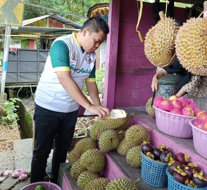 SINJAI— Usai melakukan kunjungan pertandingan dalam rangka Pekan Olahraga Provinsi (PORPROV) ke XVII di Kabupaten Sinjai pada Kamis siang (27/10), Rombongan ketua Umum Koni Sulsel Yasir Machmud menyempatkan diri mampir diperbatasan Kabupaten Sinjai dan Bulukumba untuk membeli buah durian yang di jajakan oleh warga.