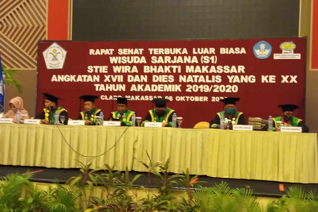 MAKASSAR||Legion News – Rapat senat terbuka luar biasa wisuda sarjana (S1) STIE Wira Bhakti Makassar, Angkatan XVII dan Dies Natalis ke XX tahun 2019-2020, Hotel Claro Makassar. Selasa, (6/10/2020)
