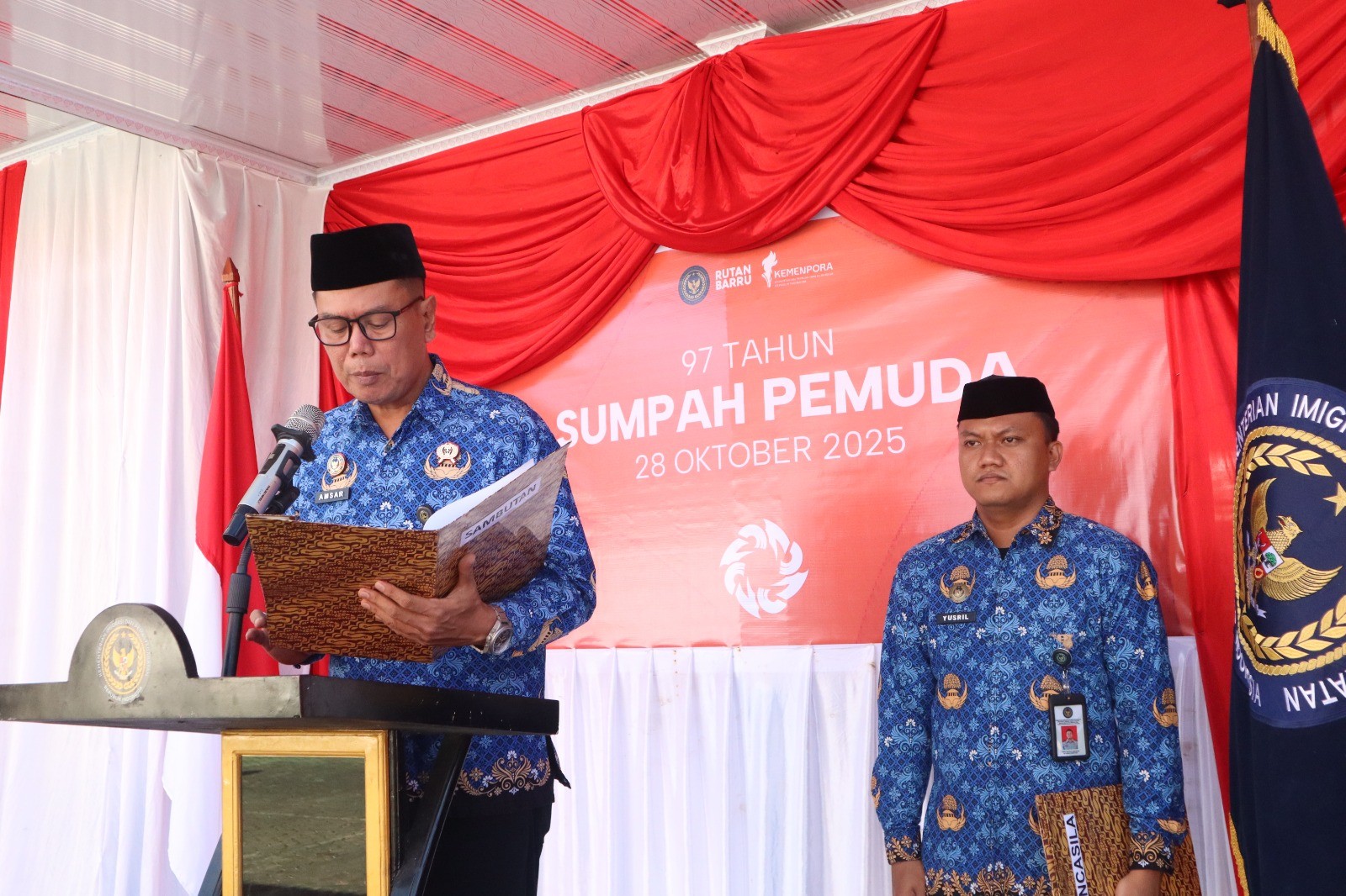 Dalam kesempatan tersebut, Karutan Amsar turut membacakan amanat Menteri Pemuda dan Olahraga Republik Indonesia. Melalui pidato tersebut, ia menegaskan bahwa peringatan Sumpah Pemuda bukan sekadar mengenang sejarah, melainkan menjadi pengingat abadi agar generasi penerus bangsa terus semangat berkarya demi kemajuan Indonesia.