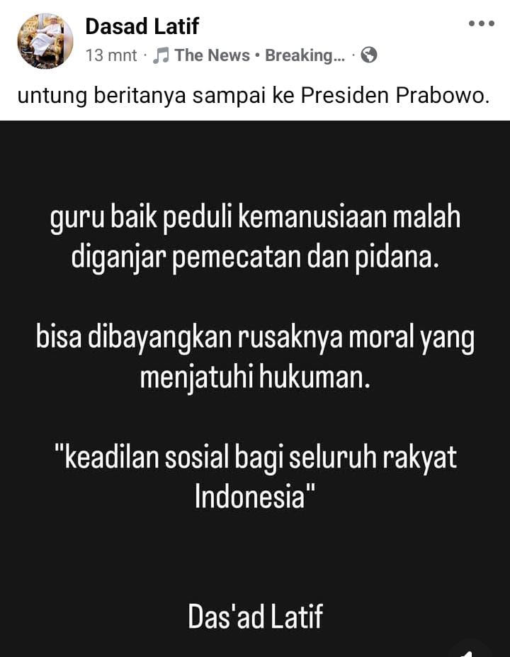 “Guru baik peduli kemanusiaan malah diganjar pemecatan dan pidana,”