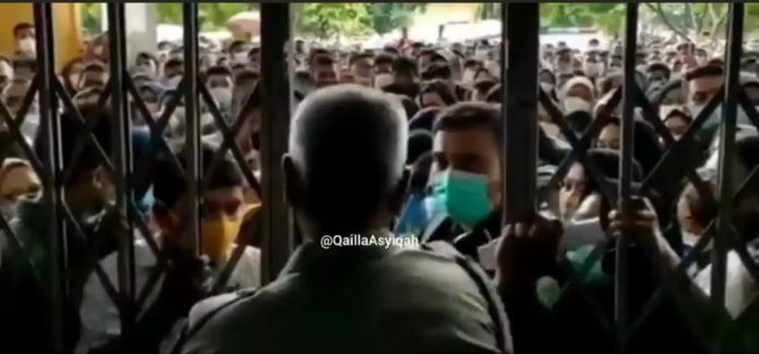 Video kericuhan saat rebutan vaskinasi di unggah oleh laman akun twitter milik @QaillaAsyiqah. Selasa, (3/8).