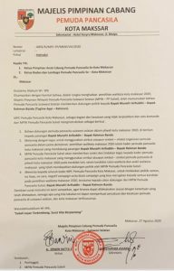 MAKASSAR||Legion News – Beredar di media sosial surat dukungan salah satu organisasi kepemudaan, tampak foto yang beredar berkop surat Pemuda Pancasil (PP) Majelis Pimpinan Cabang Pemuda Pancasila kota Makassar Nomor A.001/51/MPC-PP/MKS/VIII/2020, Perihal Instruksi