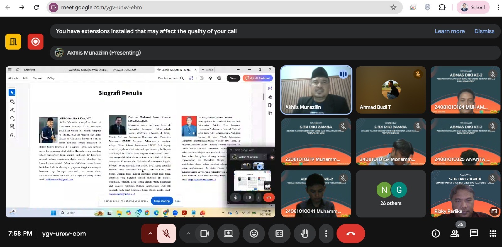 Acara yang berlangsung hampir secara full online selama lebih dari 12 jam, mulai pukul 08.00 hingga 21.00 WIB ini, hadir sebagai wadah strategis untuk mendiseminasikan ilmu pengetahuan terkini dari kalangan akademisi kepada mahasiswa dan masyarakat luas melalui platform digital.