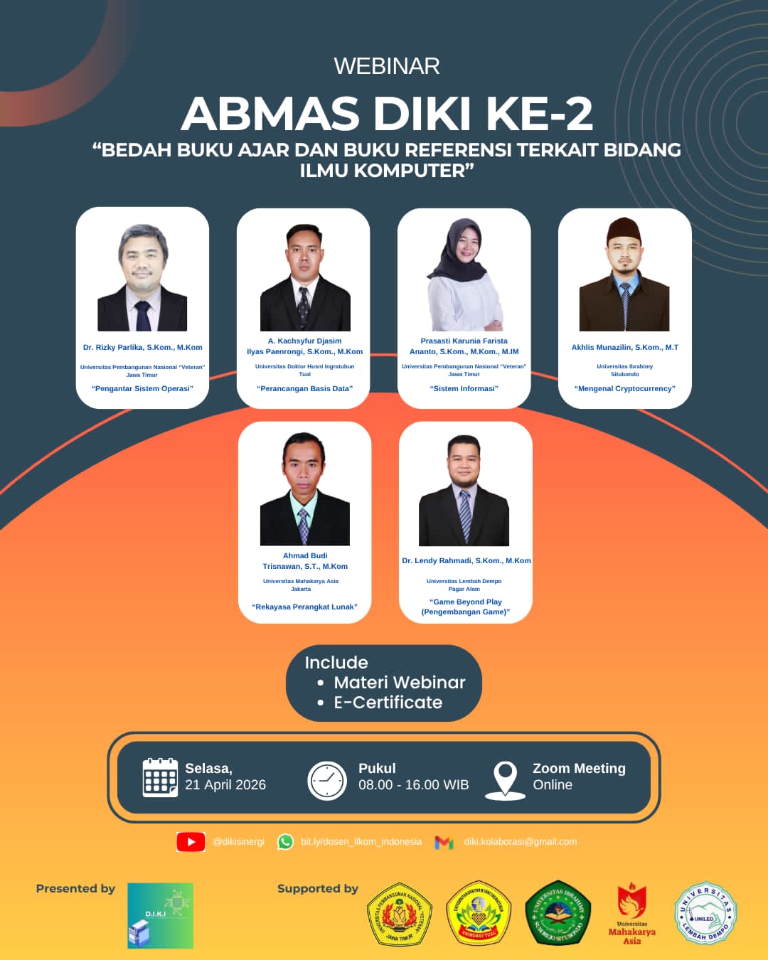 LEGIONNEWS.COM|SURABAYA, – Perkumpulan Dosen Ilmu Komputer Indonesia (DIKI), kembali mengukir prestasi dengan sukses menyelenggarakan agenda akademik bergengsi bertajuk Webinar ABMAS ke-2 pada Selasa, 21 April 2026.